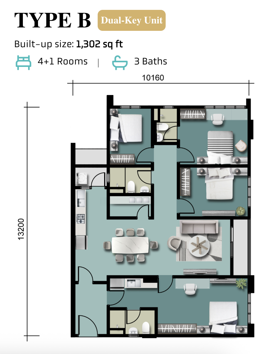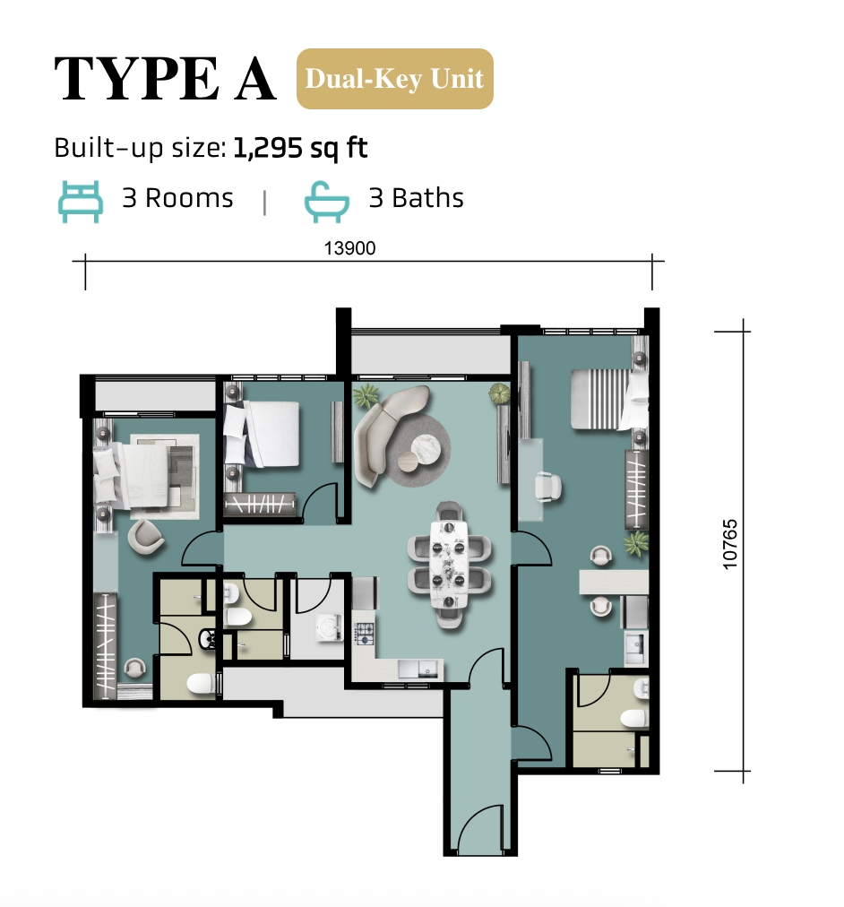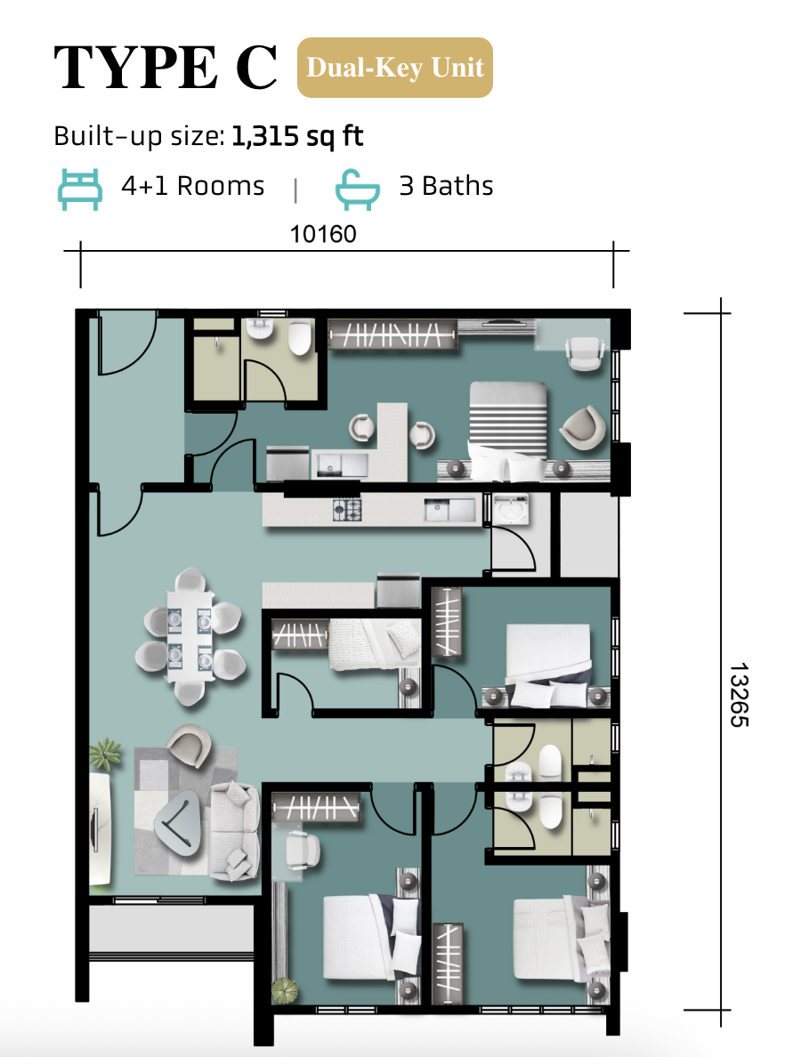 Type A – 1,295 sqft Type B – 1,302 sqft Type C – 1,315 sqft