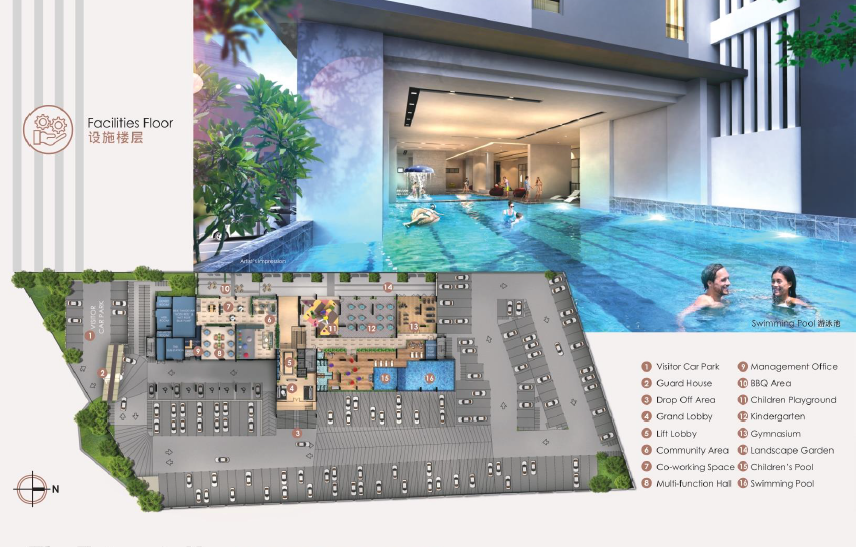 Glisten Hill Residences, A freehold residential development at Juru, Bukit Minyak. This development is conveniently located in close proximity to Bukit Minyak Industrial Park. It is only a short drive from AEON Big hypermarket at Bukit Minyak, under 15 drives from North-South Expressway – Juru interchange. This project comprises a 13-storey building, featuring 134 residential units with built-up size ranging from 1,305 sq.ft. onwards. It will offer a wide range of facilities including relaxation areas such as an indoor playground, a partially-covered swimming pool, and a co-working space.